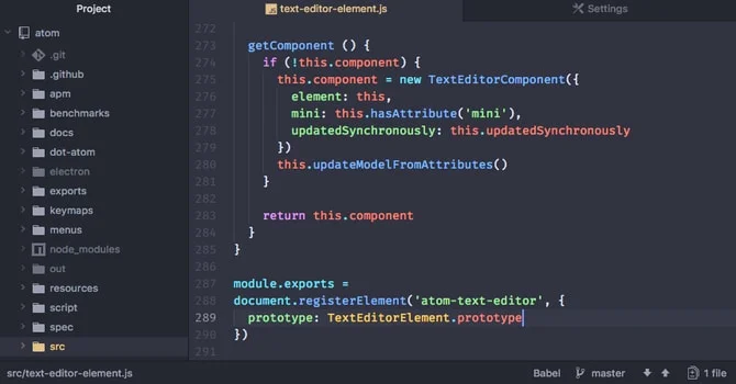 Atom is a desktop application built with HTML, JavaScript, CSS, and Node.js integration. It runs on Electron, a framework for building cross platform apps using web technologies.
